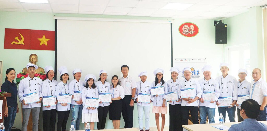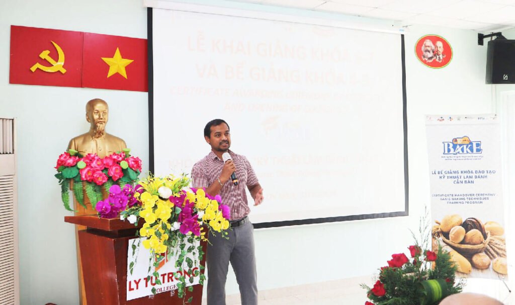 Với tư cách là nhà tài trợ của dự án BAKE, ngày 26/10 vừa qua, nhận lời mời từ Ban giám hiệu trường Cao đẳng Lý Tự Trọng, Đại diện công ty Saf-Việt đã tham dự buổi trao bằng tốt nghiệp khóa học “Kỹ thuật làm bánh cơ bản” cho các bạn học viên khóa 4 và 5 đã hoàn thành xuất sắc khóa học này.
